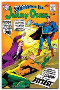 DC proves once again that the old stories are the best as we jump back to August of 1968. A time when Superman had a pal and a girlfriend that had their own titles. My only complaint back then was why didn’t DC have a title called Superman’s Boss Perry White. However, at the time, Aquaman was having a bit of a resurgence and was popping up here and there. He had joined Lois Lane in an issue of her title and writer Leo Dorfman made good use of the character as Jimmy is granted aquatic powers and takes over as the ruler of the seven seas. Plus a secondary tale as a new member of the Jimmy Olsen Clubhouse decides to discover Superman’s secret identity. More nostalgic fun from a time when a single issue of a comic could keep you entertained all month. 9 out of 10 Grahams.